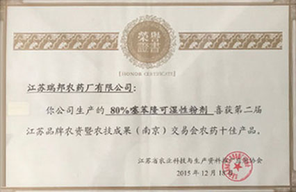 歷經二十年的發展,公司的綜合實力不斷壯大,先進生產裝備與智能制造造就的產品高品質,不斷助推公司健康、持續、穩速發展,公司先后榮膺“如東縣50強企業”、“中國農藥銷售百強企業”、“高新技術企業”、“江蘇省除草劑類環保型農藥工程技術研究中心”稱號,被連續任命為中國農藥工業協會第十屆理事單位。